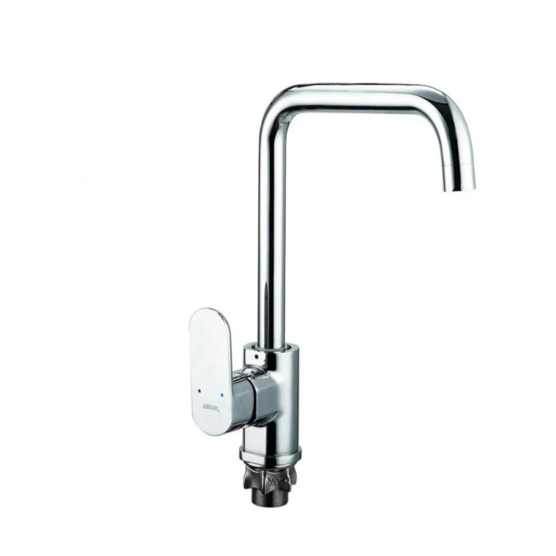 Класичний кухонний змішувач від відомого виробника TROYA виготовлений у хромованому корпусі. На моделі встановлений високий поворотний вилив і важіль керування подаванням холодної й гарячої води.